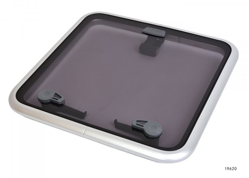 BAVARIA palubni otvor s dimno sivim akrilnim staklom. Zahvaljujući tarnim šarkama, poklopac se može otvoriti bez koraka.