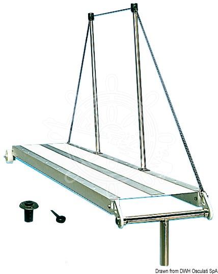 Od anodizirane lake legure obložena bijelim protukliznim materijalom, kompletna sa dva rukohvata od inoxa, kotačićima, osovinom za fiksiranje od inoxa i ležajem za usadnu ugradnju.