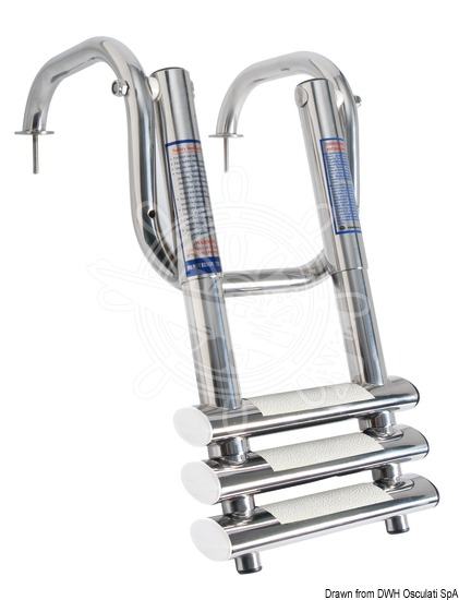 Brodske stepenice teleskopske za krmu sa ručkama 3 prečke, inox sjajni