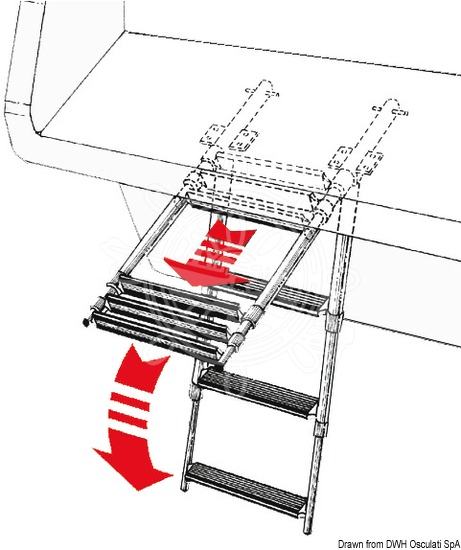 Brodske stepenice teleskopske za montažu ispod platforme 3 prečke inox