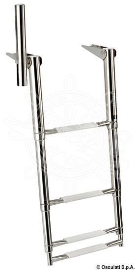 Sa sklopivom/preklopnom ručkom za lakše penjanje na brod. Izrađene od sjajnog inoxa AISI 316. Savršene obrade, sa ovalnim stepenicama sa bijelim plastičnim gazištem.