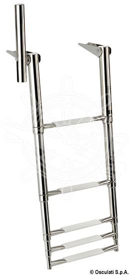 Sa sklopivom/preklopnom ručkom za lakše penjanje na brod. Izrađene od sjajnog inoxa AISI 316. Savršene obrade, sa ovalnim stepenicama sa bijelim plastičnim gazištem.