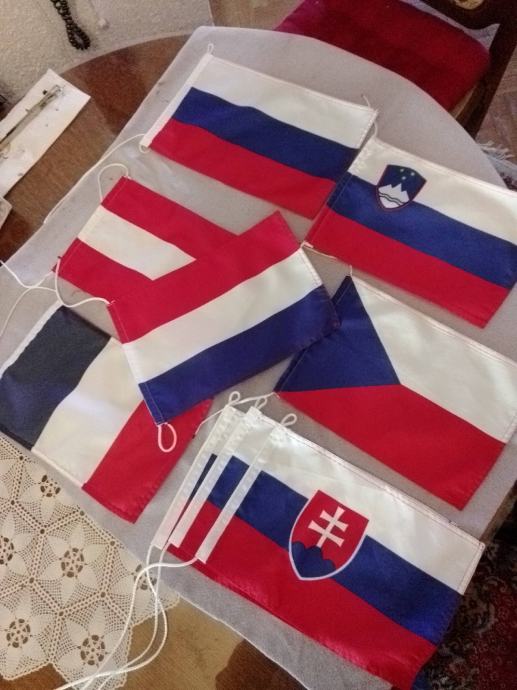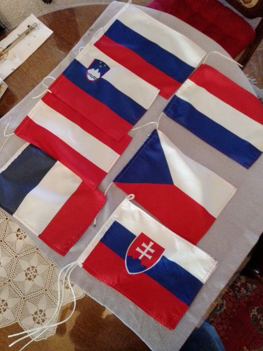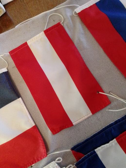 Obrubljene sa špagicom zastave 30*20cm.50kn komad ,moguć dogovor za sve (9kom). šaljem preporučeno uplatom na moj tekući račun+ troškovi poštarine.