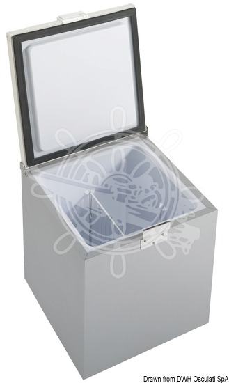 Vrlo dobro iskoristiv proizvod jer se može korisiti kao firžider ili kao zamrzivač te biti instaliran kako se prednjim otvaranjem tako i sa otvaranjem odozgora. Kompresor SECOP se može montirati na udaljenosti do 1,3 m. Vrata su bijele boje, ali se mogu bojati po želji. Brodski hladnjak / zamrzivač - frižider za kokpit cruiser 40.