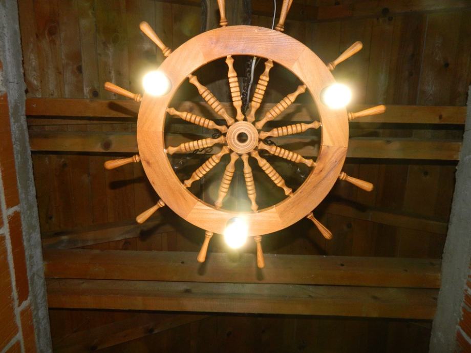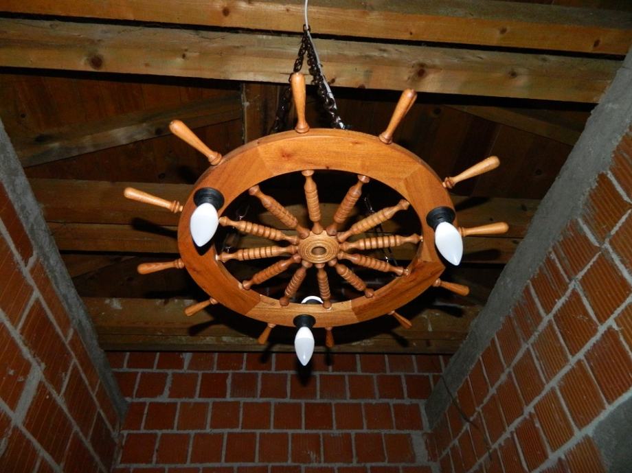 Promjer 60 cm izrađeno od drveta brijesta Brodsko kormilo prerađeno u luster sa tri žarulje napon 220V