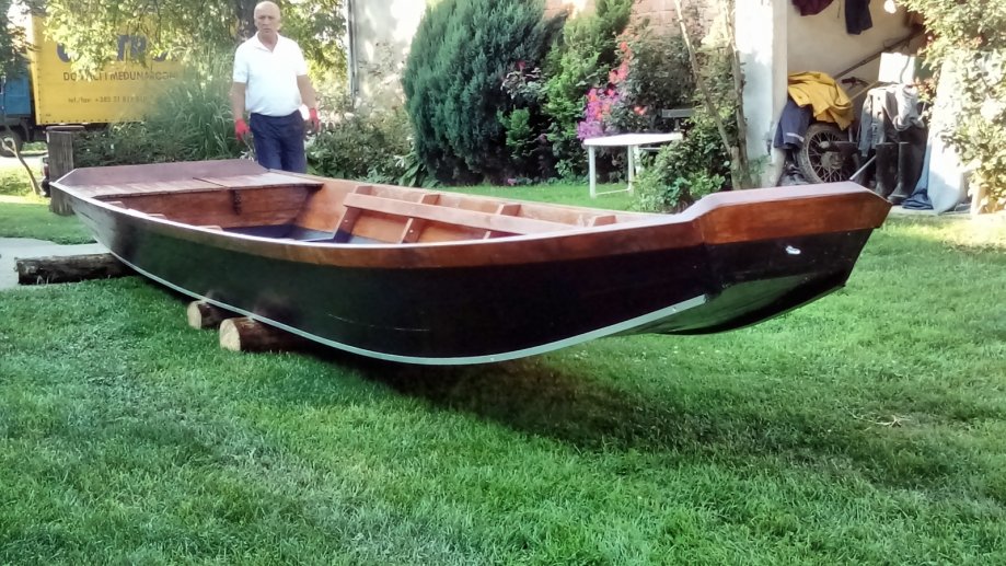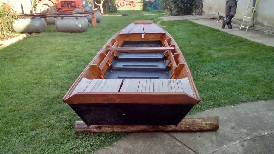 Čamac drveni od bijelog Slavonskog hrasta najbolji materijal za izradu čamaca u podu 1 m gore 1.5 dubina 0.4 ukupne dužine 6m. Zaštićen izvana terobit original premaz za camce iznutra lazura sadolin i lak sadolin yaht. Svi spojevi falcani vrhunska izrada dunavski kroj. Pogodan za motore do 20 ks. Može i druga dimenzija po želji.