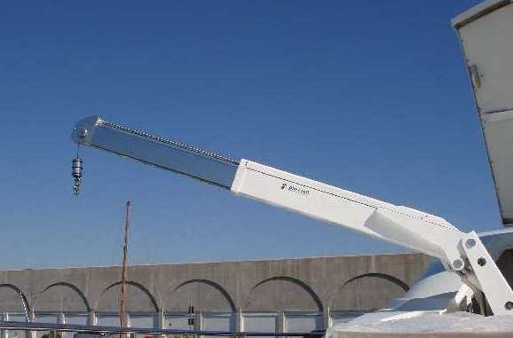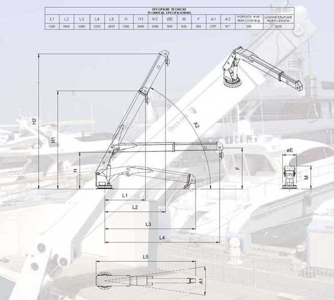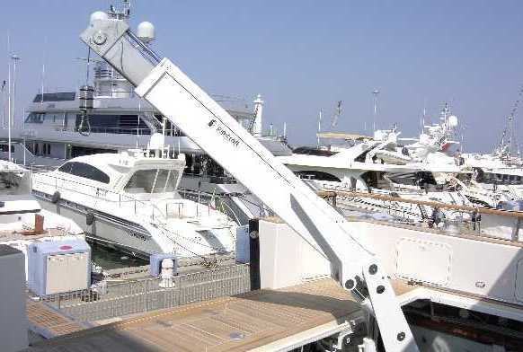 Turning-folding davit with double joint for the hindrances overcoming. Particularly suitable to be housed in the bow garage, where it allows an easy handling of the tender. Adopting the telescopic jib can be increased its versatility as regards the model 39GR, creating less encumbrance of the davit in the §closed position§. The generous measuring of all its mechanical parts makes it adequate for the handling of high loads. Thanks to the special care used for its design it has been possible to eliminate every §below deck§ component, making its location on board extremely easy. Please contact our Technical Office to customize some details.