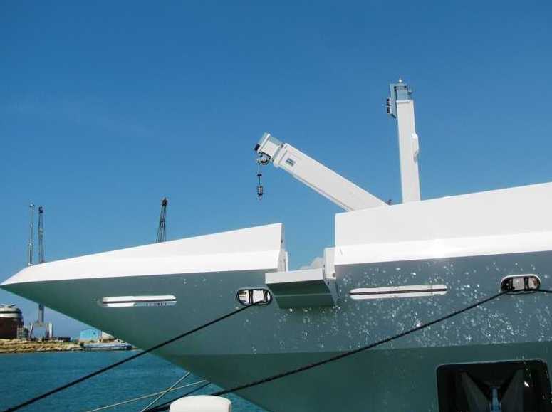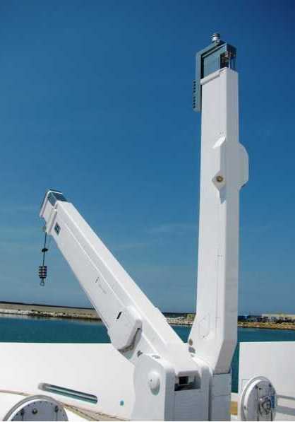This innovative project combines together the classic crane function at the one of telescopic-mast for the handling of navigation lights. The system equipped with double arm allows to get cranes with considerable capacities without effecting aesthetically and functionally the telescopic-mast provided only as lights support. Also the overall dimensions are optimized and itçs also allowed a single interface with the boat