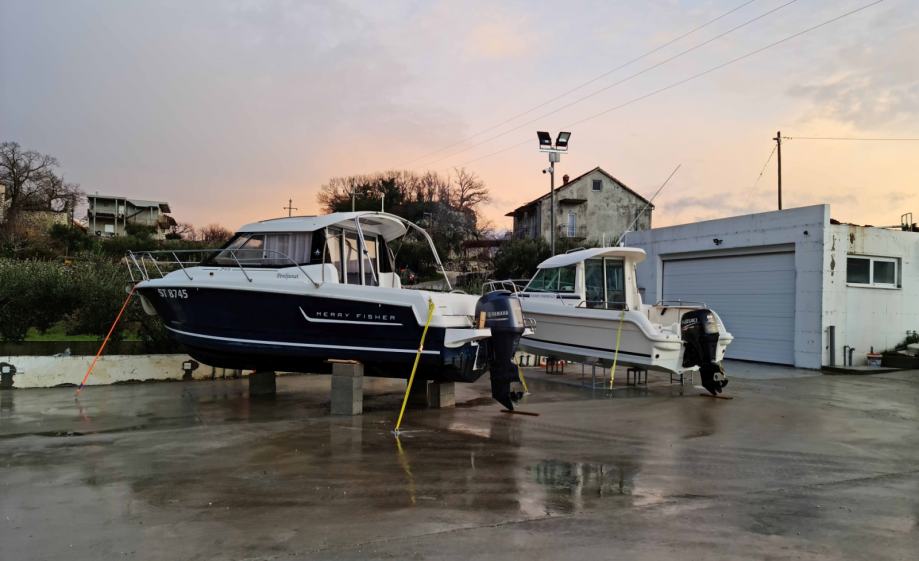 In Kostanje, not far from Split, Omis, Makarska, Brela, Tucepi in a fenced area fully furnished with a large space for all kinds of works and services offers you a complete service with all required installations and services based on many years of experience and work on ship installations and all types of installations as an authorized representative, distributor and service of renowned world manufacturers offers the sale and installation of the same with all additional works. The dry marina extends to 2000m2 of fenced space covered with 24/7 cameras with installations throughout the marina air, water and electrical outlets, floodlights, etc. We open reservations for 50 boats up to 10-12 m.