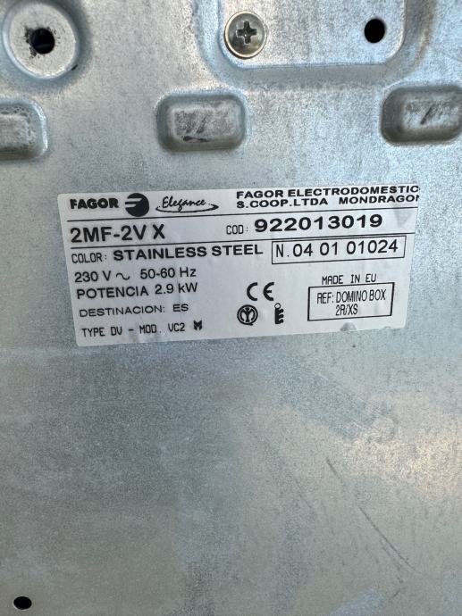Rabljeni, malo koristeni inox ugradbeni stednjak sa dva grijaca model Fagor Domino 2R/XS