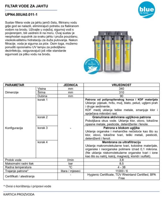 Nakon filtracije,voda je sigurna za piće.Ugrađene četiri patrone.