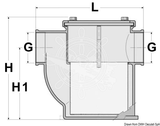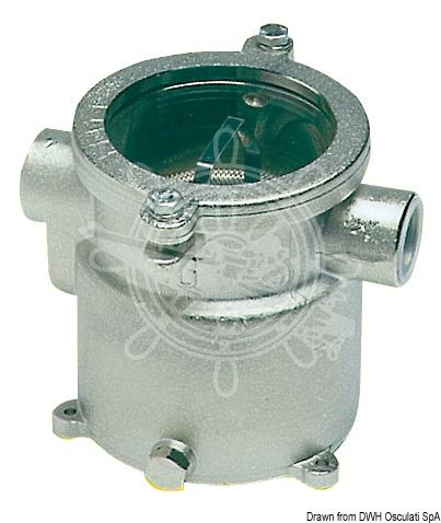 Od niklovanog mesinga. Apliciraju se na usis vode motora. Vrlo jednostavni za inspekciju. U skladu sa normama RINA sa izjavom 11/447/88 DIP. Filter za vodu niklovani mesing 4"