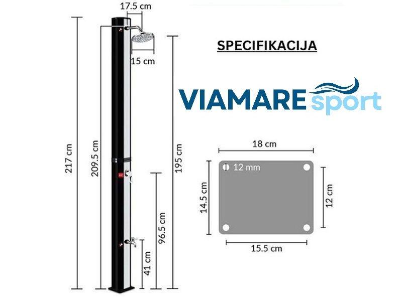 Vanjski vrtni SOLARNI TUŠ VIAMAREsport 35L, 215cm, s slavinom za noge