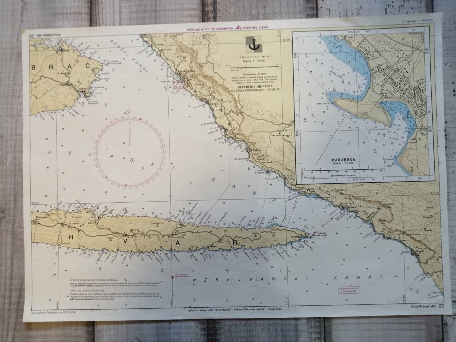 Karta Makarska-MK-20,Republika Hrvatska-Hrvatski hidrografski institut,karta očuvana,dimenzije karte 50x35 cm,