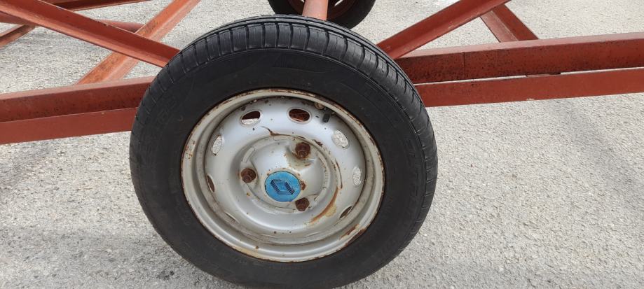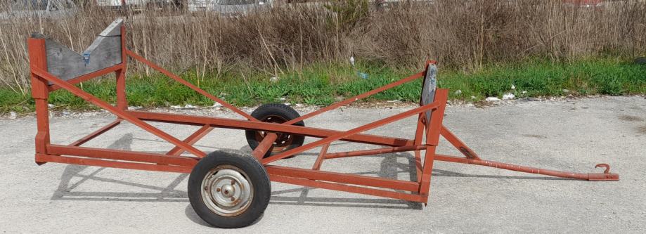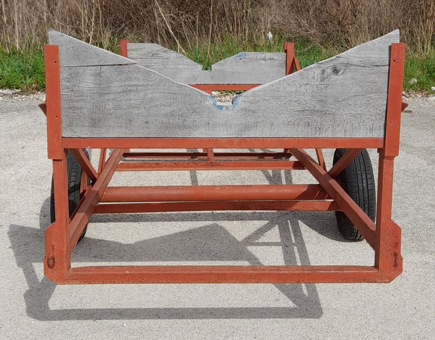 Dimenzije sanduka u cm: dužina 260, širina 133, visina 80. Dužina rude 150 cm. Kotači 13 cola.
