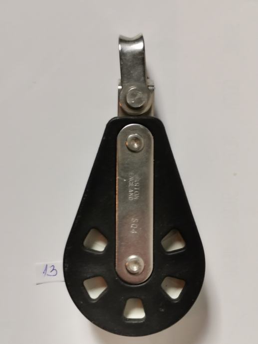 Prodaje se koloturnik " BARTON SQ4- England " od crne plastike sa ojačanjem od inoxa sa fiksnom glavom . Kolotur je bijele boje fi50mm za konop do fi12mm . Dimenzije : 130 x 60 x 30 mm.