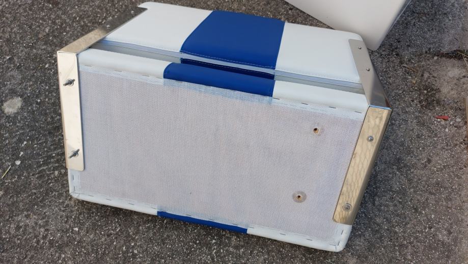 Dva sjedala, koža+inox, s ili bez dva gavuna/spremnika kao bazom sjedala, drvena vratašca, prodajem. Sjedala i spremnici su uklonjeni iz plovila zbog modifikacije interijera. Sve kao novo! Prodajem u kompletu ili zasebno.