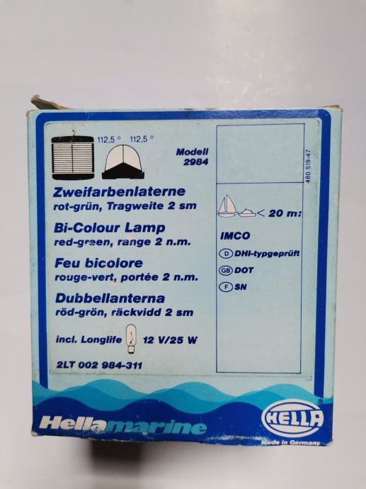 Prodaje se navigacijska lampa brodska crveno-zeleno svjetlo, " Hellamarine " iz Germany , 12 V / 24V , 25 W.