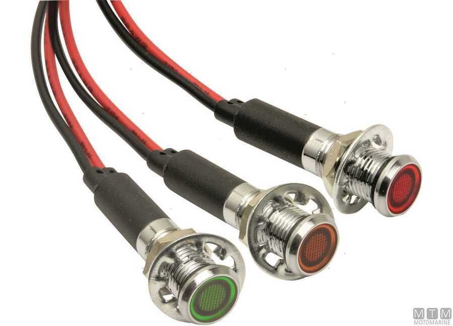 Vodonepropusna kontrolna LED svjetla 12V od Kromiranog Mesinga. Opremljena maticom, brtvom i sigurnosnom podloškom. Maksimalna debljina ploče 13 mm.
