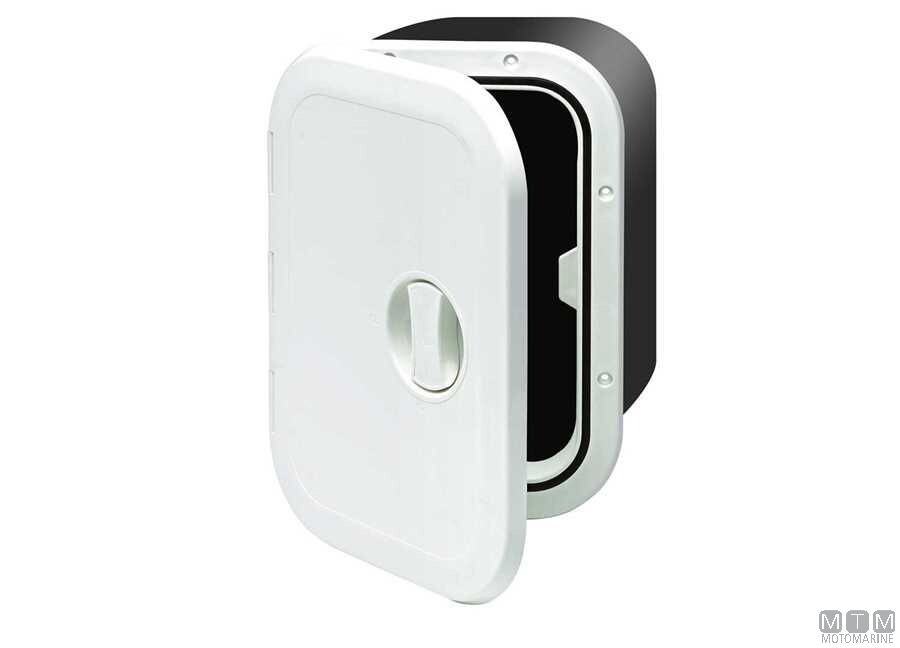 Vodonepropusna prohodna vratašca od saćaste ojačane Plastike s otvaranjem na 180° i spremnikom. Sistem s dvostrukim otvaranjem: klasičan i na izvlačenje.