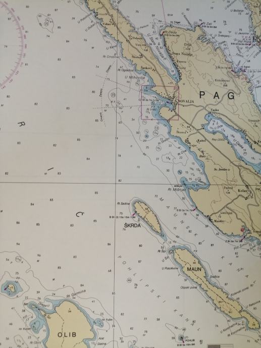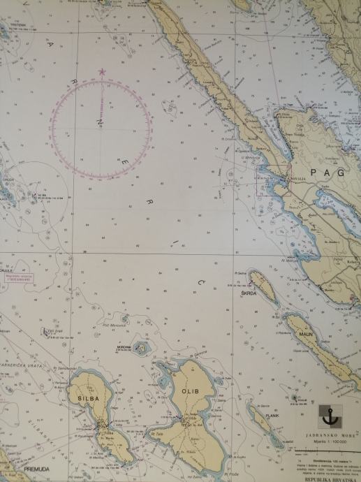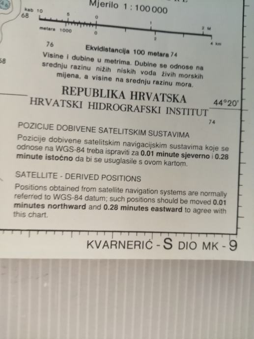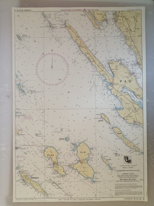 Nautička karta KVARNERIĆ S-MK 9,Republika Hrvatska-Hrvatski hidrografski institut,karta očuvana,dimenzije karte 50x35 cm,