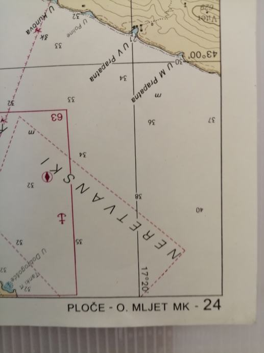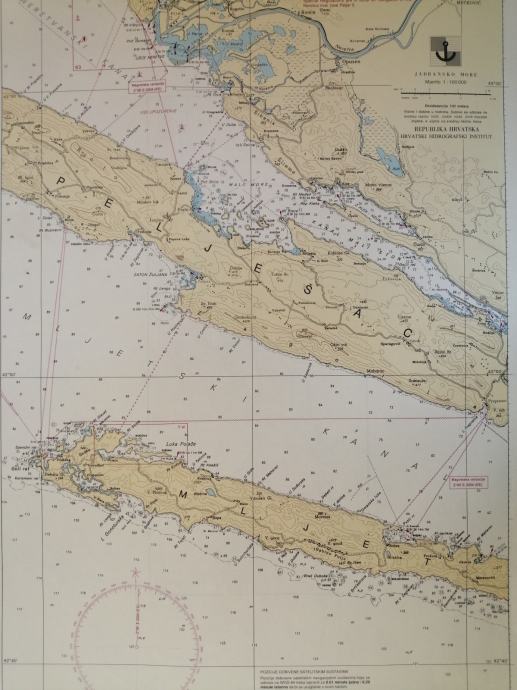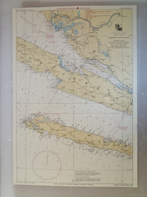Nautička karta PLOČE-MLJET-MK 24,Republika Hrvatska-Hrvatski hidrografski institut,karta očuvana,dimenzije karte 50x35 cm,