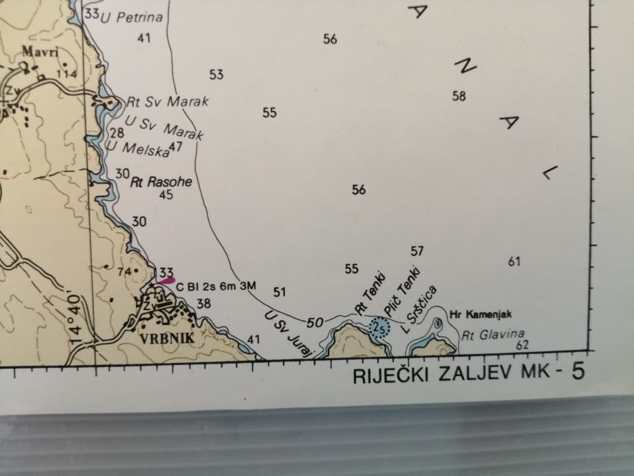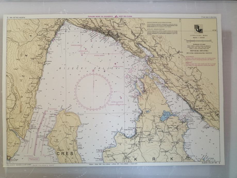 Nautička karta RIJEČKI ZALJEV-MK 5,Republika Hrvatska-Hrvatski hidrografski institut,karta očuvana,dimenzije karte 50x35 cm,