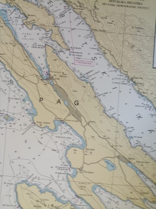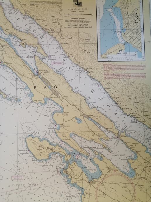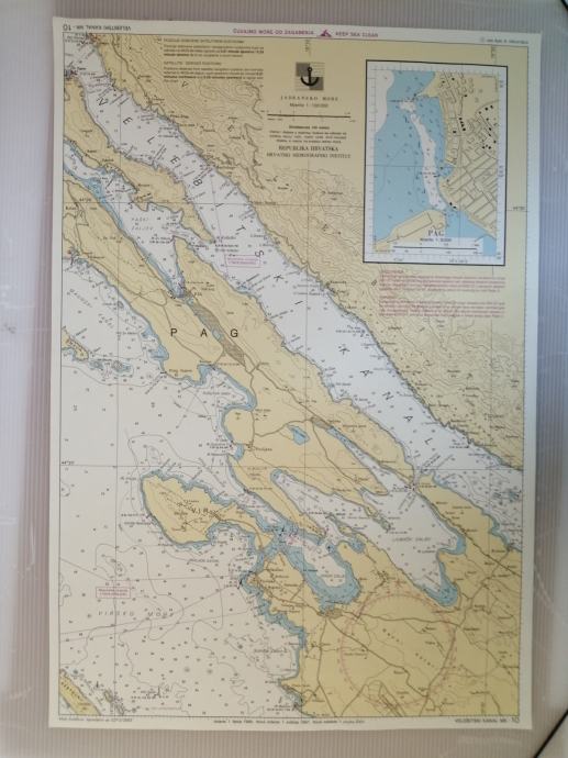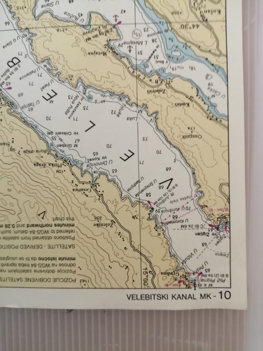 Nautička karta VELEBITSKI KANAL-MK 10,Republika Hrvatska-Hrvatski hidrografski institut,karta očuvana,dimenzije karte 50x35 cm,