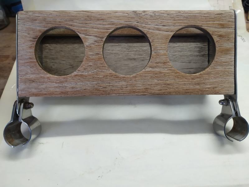 Nosač se montira na cijevi konzole korm.uređaja, izrađen od inox 316 i teaka. Razmak između osi cijevi na koje se montira oko 275 mm. Skipper i članovi posade ne smiju biti " žedni "