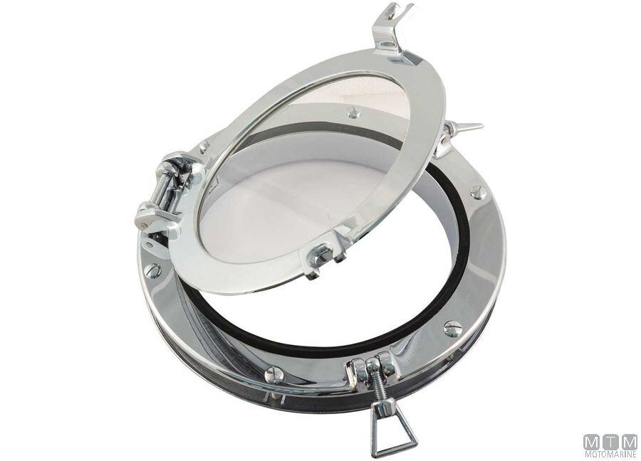 Okrugli prozor od Mesinga s uključenim montažnim okvirom.