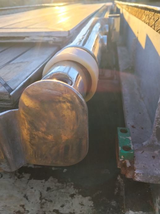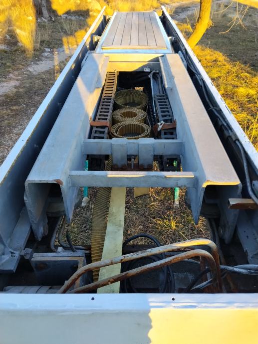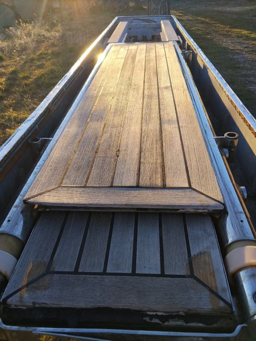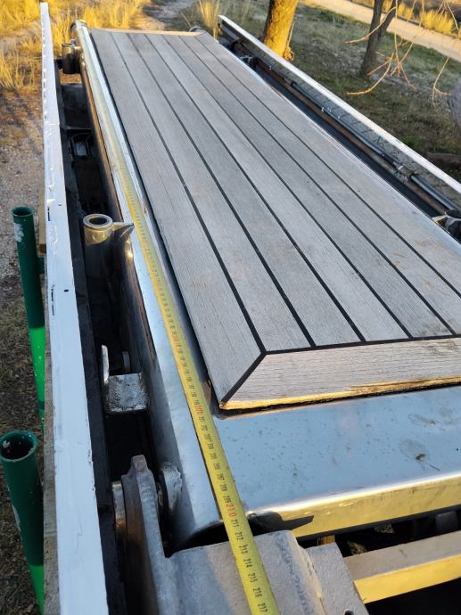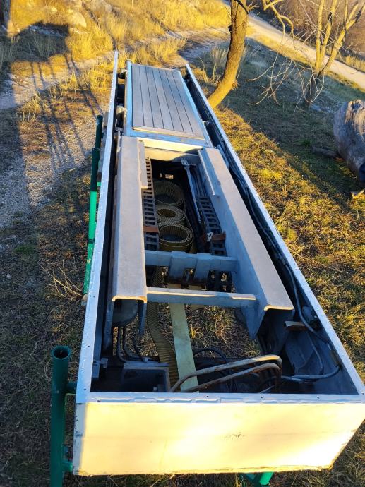 Prodajem korištenu brodsku pasarelu kazetnog tipa. Vanjske dimenzije 375 cm dužina 69 cm širina i 28,5 visine. Izvlači se preko hidrauličnog motora 250 cm na vodilicu plus dodatnih cca 170 cm na teleskop preko cilindra. Ima dva cilindra za podešavanje visine. Svi vidljivi elementi i cilindri su izrađeni od INOX a dok je kućište od pocinčanog čelika. Težina 600 kg. Uz nju ne ide hidraulični agregat i upravljanje. Prije ugradnje potrebno ispitati sve elemente. Cijena novog modela manje veličine je preko 30 000€.