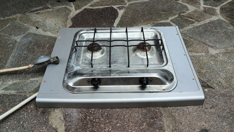 Prodajem plinski stednjak za barku - 2 ploce, sa pripadajucim crijevom i regulatorom.
