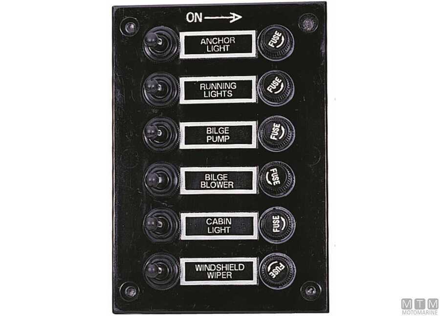 Ploča od ABS-a s vodootpornim prekidačima i osiguračima opremljena unaprijed otisnutim naljepnicama ( 6 prekidača).