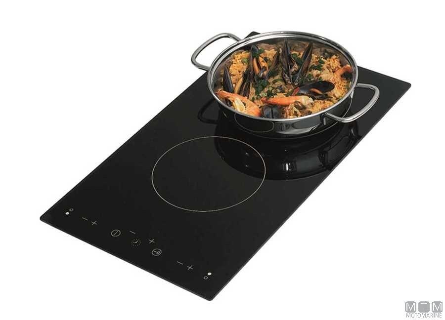 Ugradbena ploča za kuhanje 220V s dvije staklokeramičke ploče za grijanje od 1200/1700W i kontrolnim senzorima na dodir (touch). Potrebno dovršiti s držačem za lonce koji se montira na potpornoj površini.