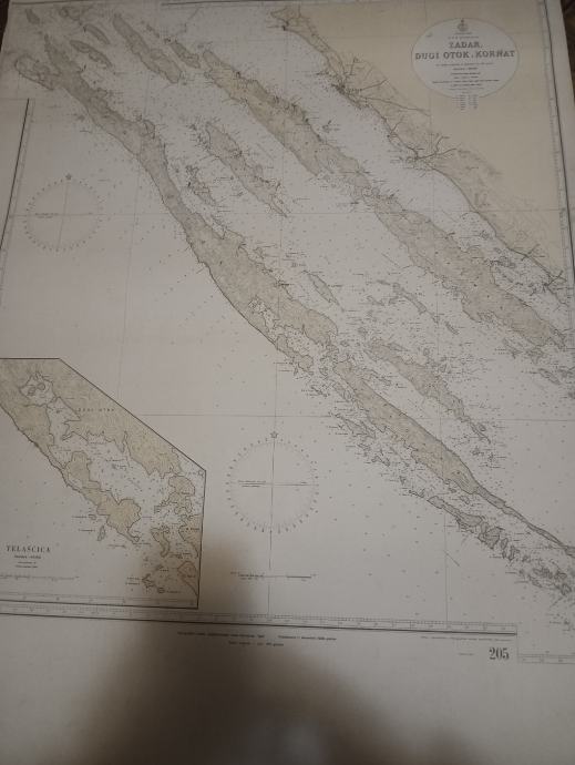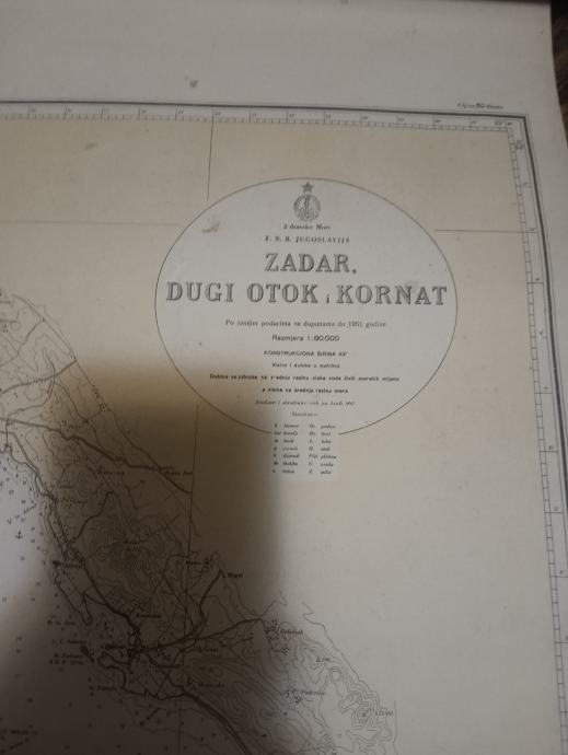 Prodajem staru nautičku kartu Zadar, Dugi otok, Kornati 100/70cm. Plačanje na račun ili gotovina.