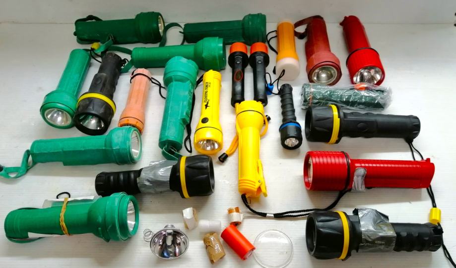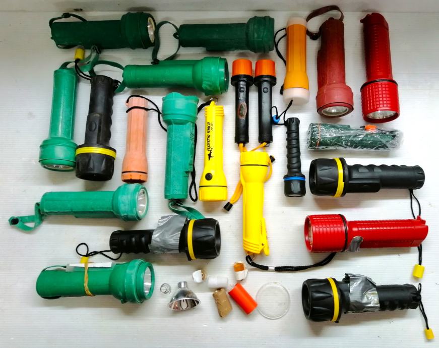 Razne gumirane / pvc, plutajuće, vodootporne baterijske lampe veličine od 15 do 20cm i rezervni dijelovi za iste.