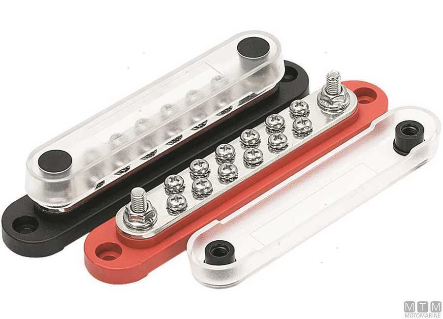Sabirnica s izoliranom bazom, terminalima od inoxa i zaštitnim poklopcem 12 vijaka M4 i 2 navojne matice M6 150 A (crna).