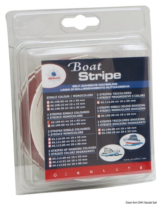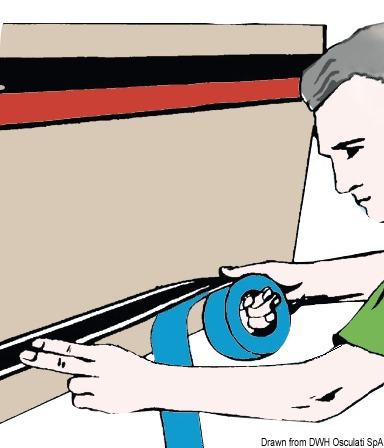 Vodena linija sadrži posebno trajno ljepilo koje se, kad jednom prione uz plovilo, osuši na način da traka postaje istovjetna sa onom od premaza (boje). Upotreba je vrlo jednostavna, pomoću samonivelirajuće površine pomoćne trake. Za nekoliko minuta savršeno ćete obaviti posao za koji vam je inače potrebno nekoliko sati.