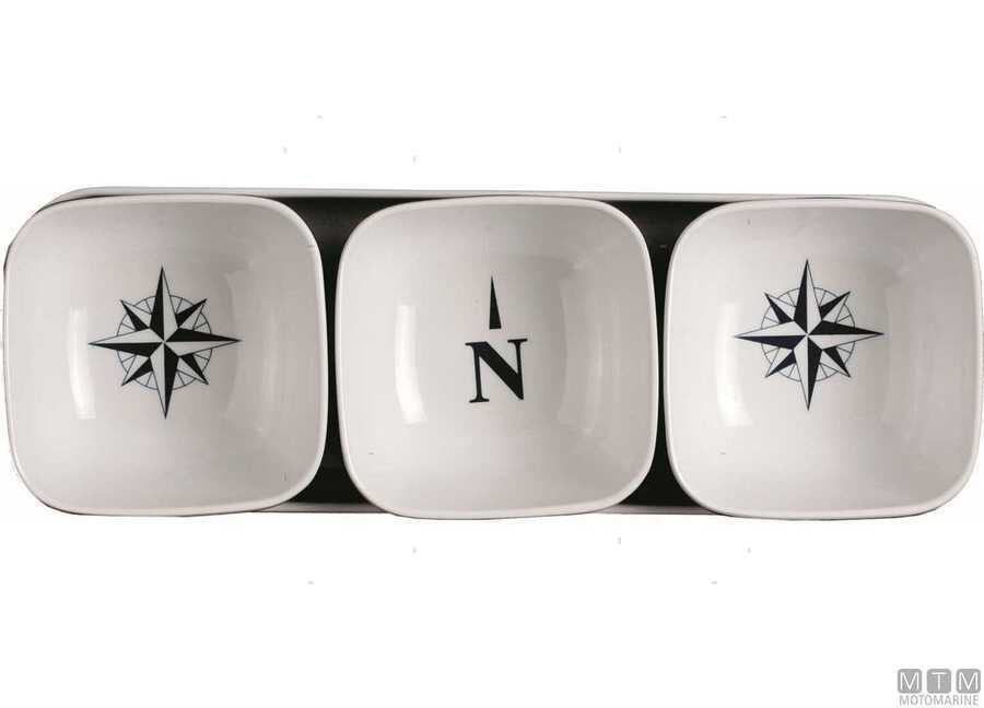 Set s 3 malih zdjela s Northwind ukrasom u pravokutnom tanjuriću.