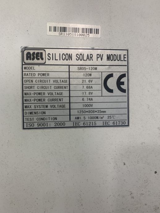 Prodajem solarni panel snage 120 W dimenzija 1250x808x35mm