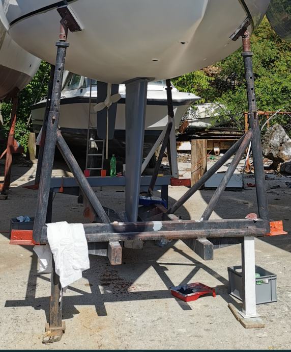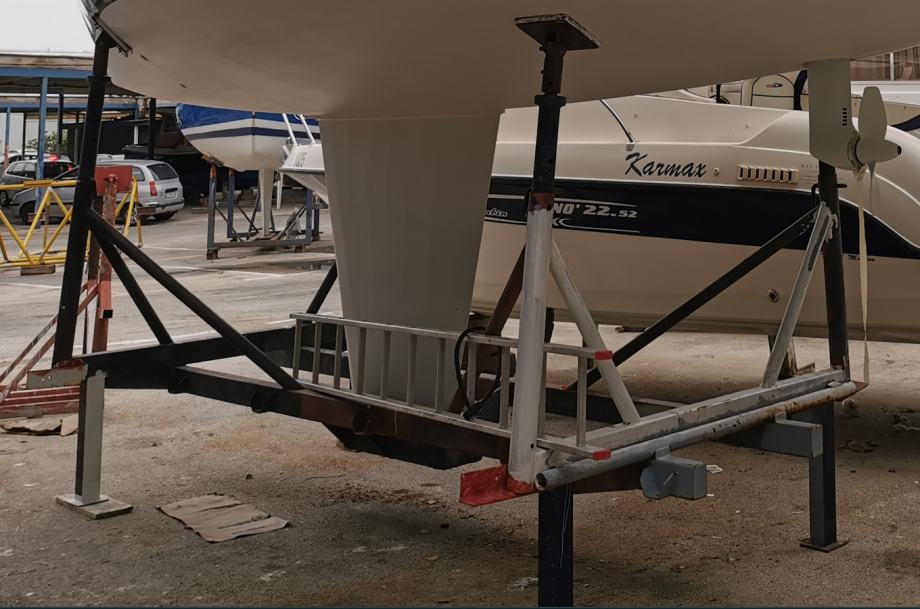 Prodajem stalak za jedrilicu s četiri potporne ruke podesive po visini (teleskopski s klinovima i dodatno navojno), te s centralnom bazom za kobilicu.