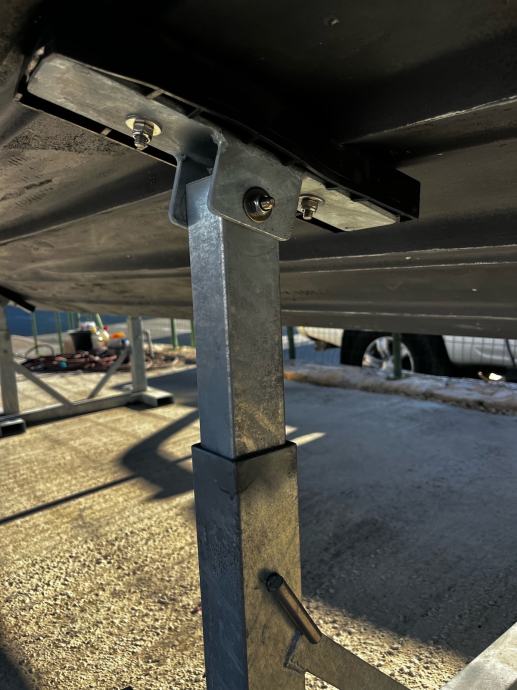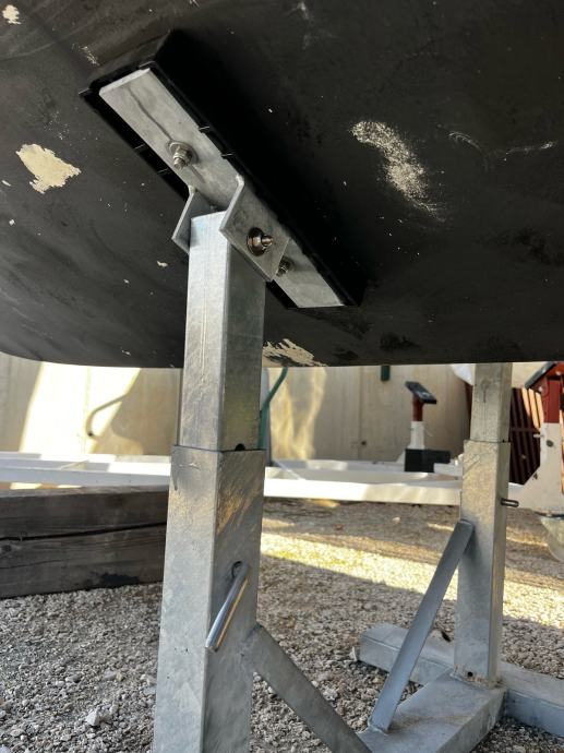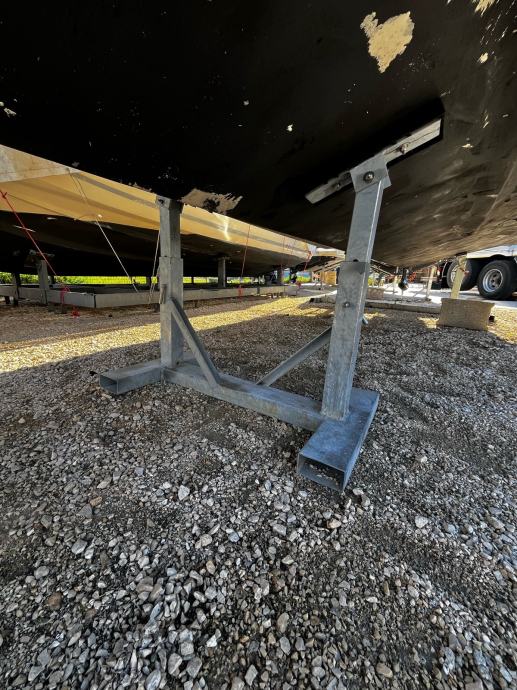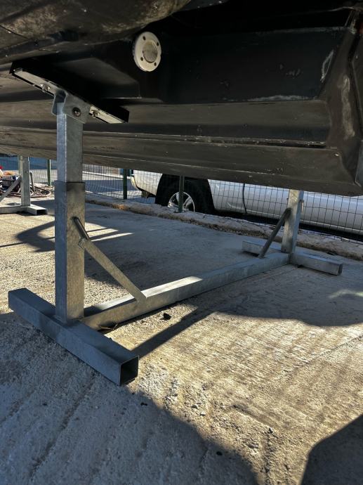 Komplet se sastoji od dva nosaca. Podesivi po visini. Primjenjiv za sve tipove plovila. Pocincani. Za plovila do 2T težine.