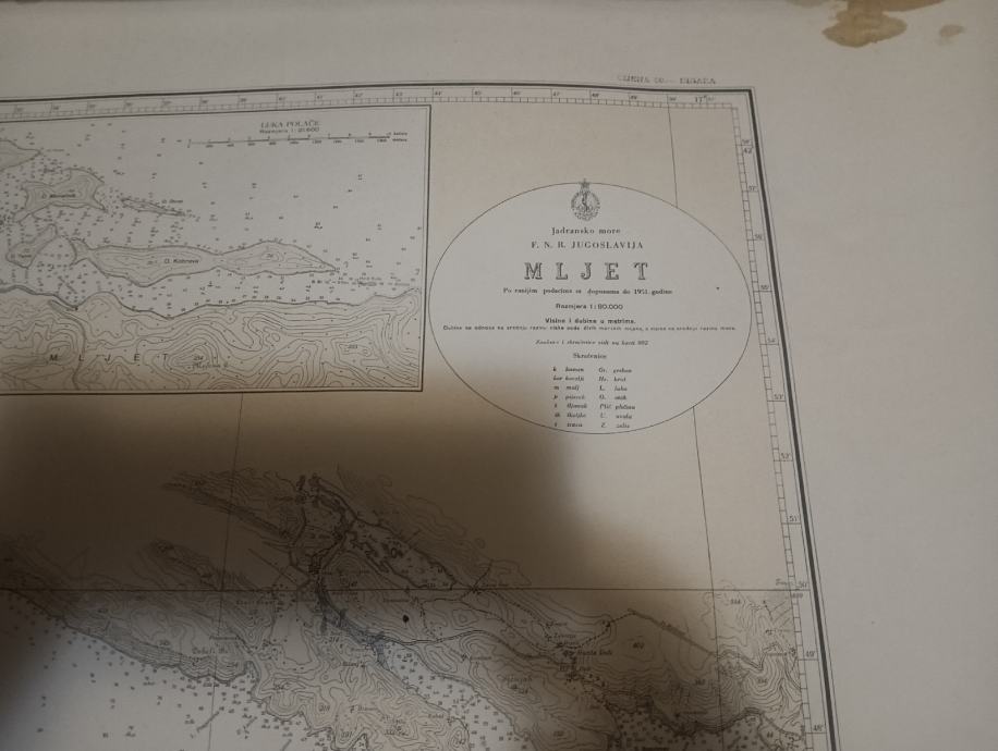 Prodajem staru nautičku kartu Mljeta dimenzija 100/70cm. Plačanje na račun ili gotovina.