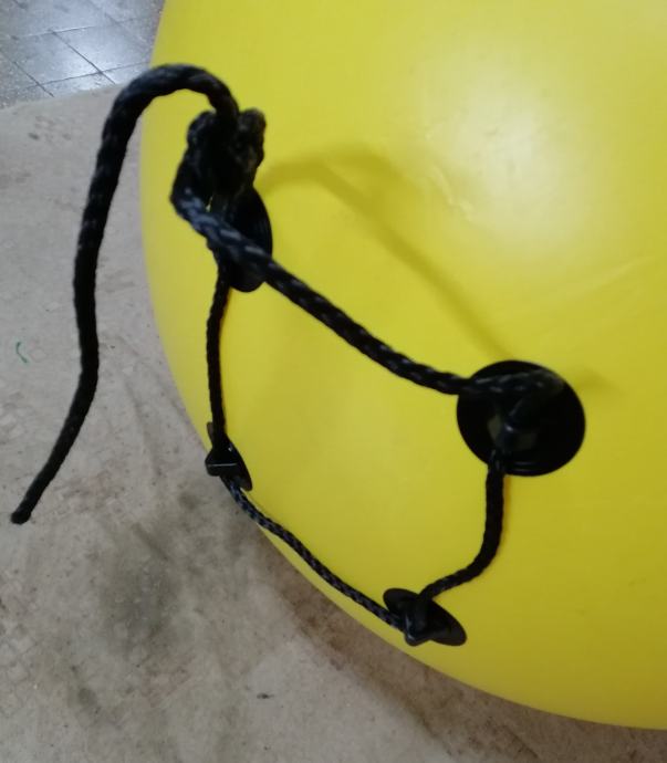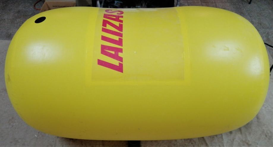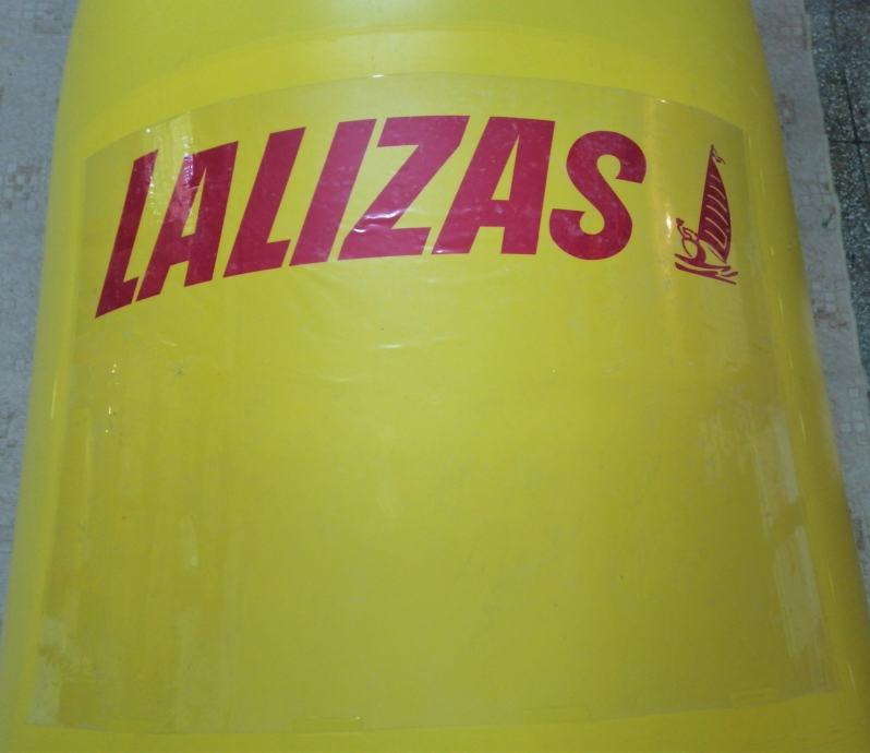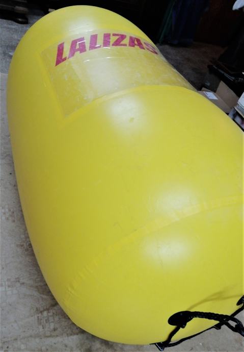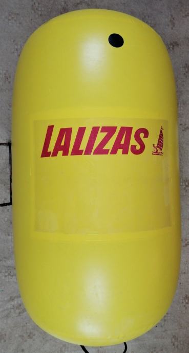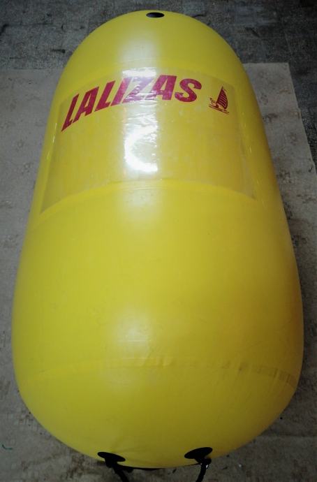 Velika (2m visoka x 1,5m Ø) pvc regatna bova, plutača na napuhavanje marke Lalizas, četri prolaza za konop u doljnjem dijelu za privez, dvostruki ventil za brzo napuhavanje i ispuhavanje, prozirni đep za reklamne poruke.