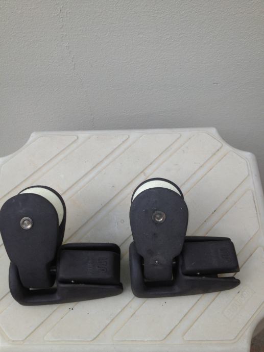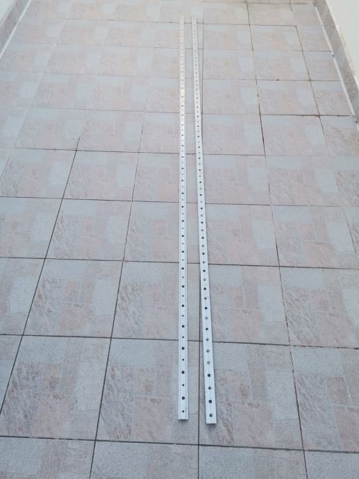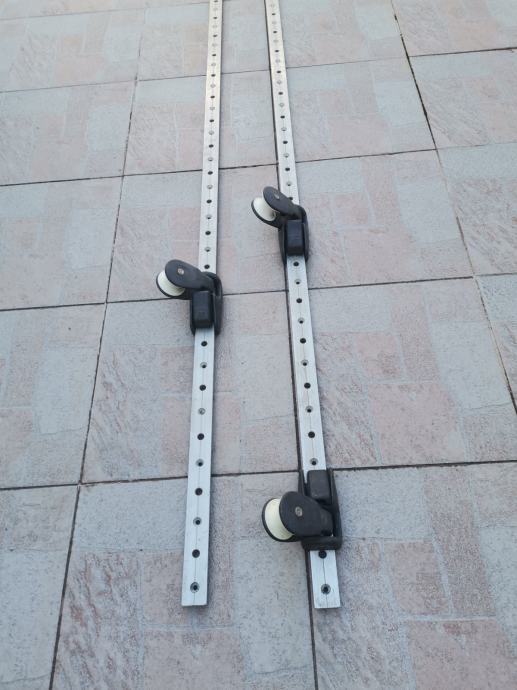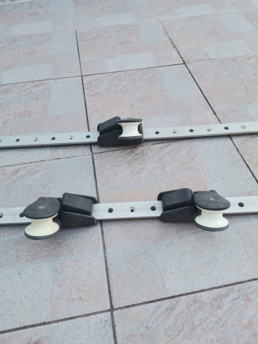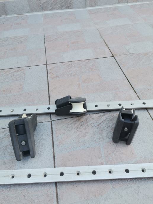 Prodaju se " T " vodilice od anodizirane legure dužine L=260 cm , kom. 2 sa koloturnicima - klizačima sa kočnicom " John Mast " koji služe za pritezanje škote genove. Cijena vodilica kom. 2 je 150 eura, 2 kom koloturnika =200 eura