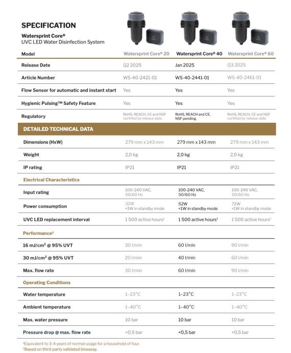Vodeni otisak Core® je naša najnaprednija UVC LED voda sustav za dezinfekciju, dizajniran i proizveden u Švedska s visokom kvalitetom, svestranošću, kompaktnošću dizajn i isplativost na umu.