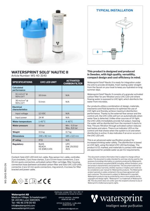 Solo 40 FS _ UVC-LED dezinfekcija vode - filter za vodu do 16L/Min