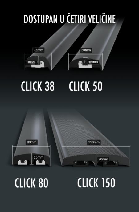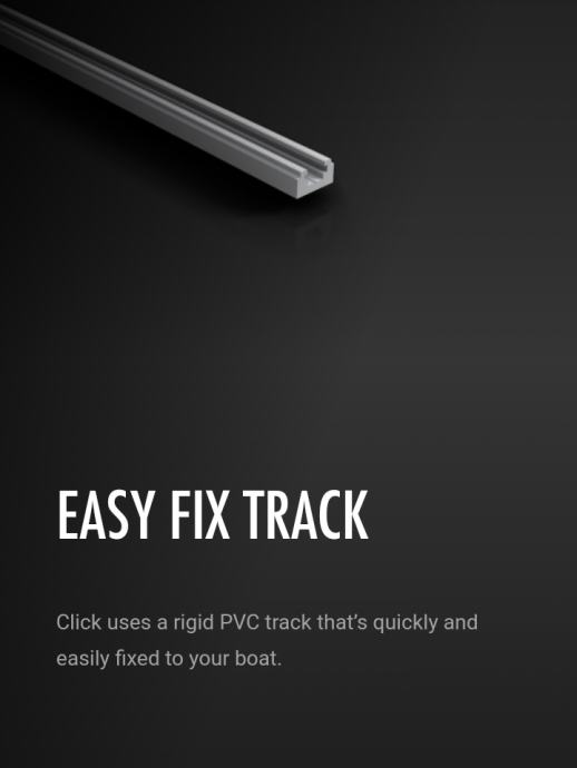 CLICK se sastoji od fleksibilne PVC vodilice i bokoštitnice koje su UV stabilne, završeci su posebno dizajnirani od sjajnog nehrđauječeg čelika.