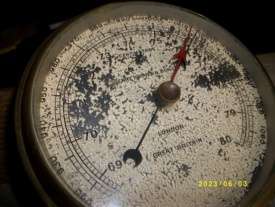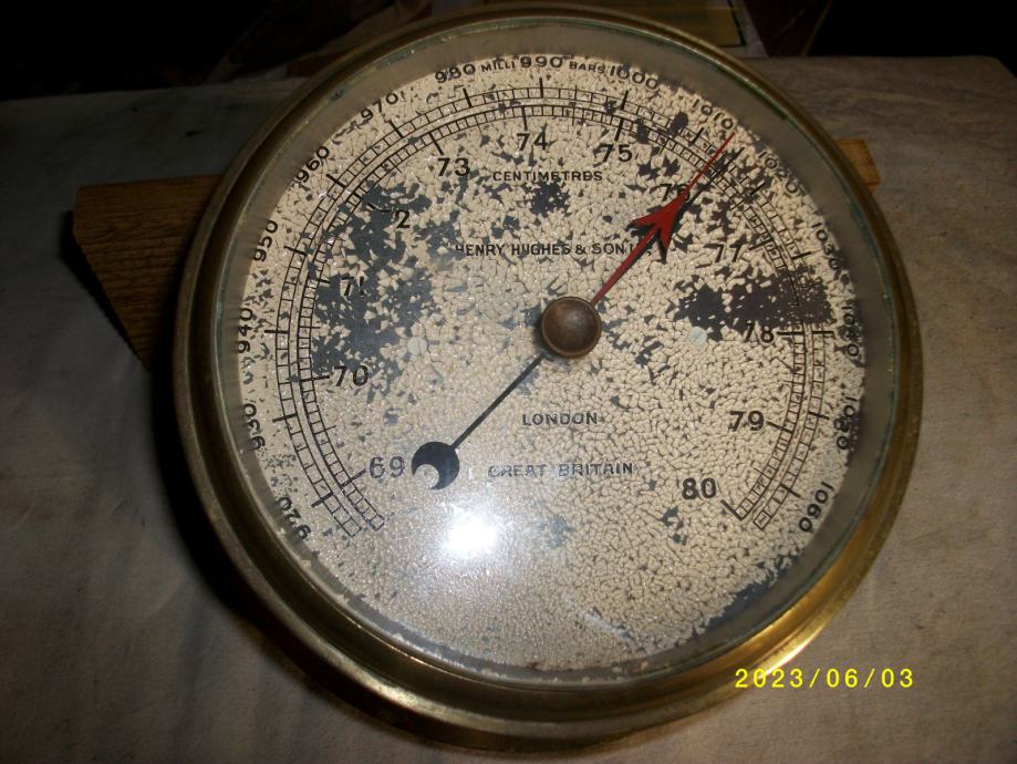 BRODSKI BAROMETAR --- HENRI- HUGHES-& -SONLT--- FI 20CM--VISINA10CM LONDON G.B. BAROMETAR SKINUT SA VODONOSCA "IZVOR" KOJI JE NOSIO VODU ZA GOLI OTOK ISPRAVAN