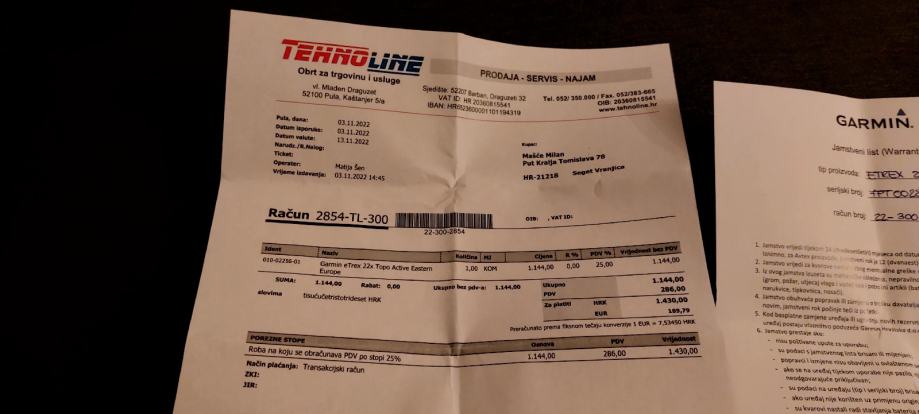 Garmin je kupljen 03.11.2022., pod garancijom do 03.11.2024.